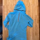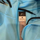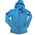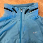 Nike Dri Fit Womens Active Hoodie Running Jacket Blue Size Hood can be zipped up to hide.