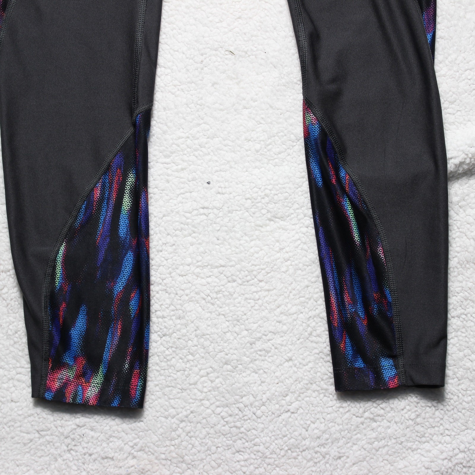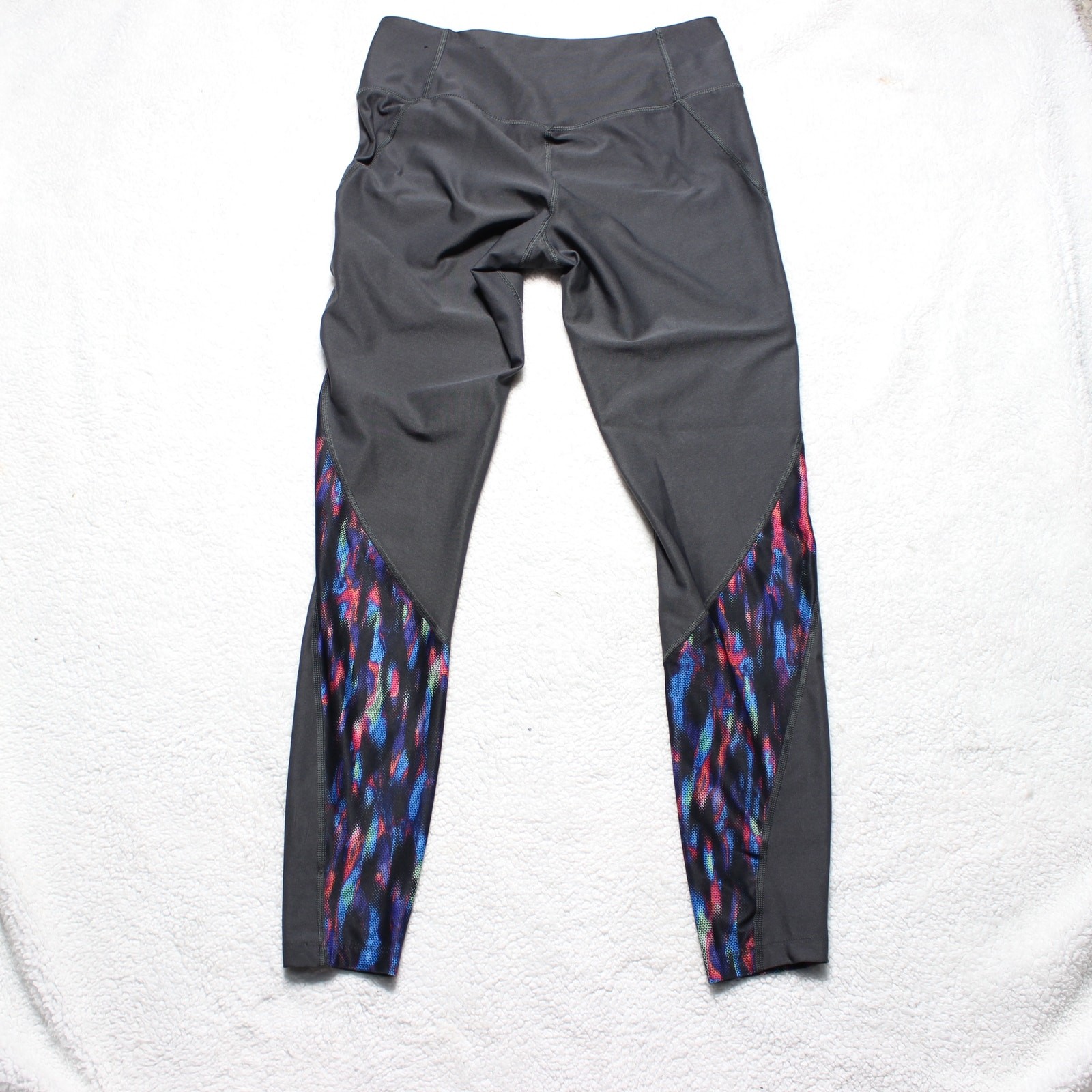 Stay cool and comfortable with these Nike Dri-FIT performance leggings in a women’s size medium. Dark gray with vibrant multicolor print panels on the legs for a stylish contrast. Moisture-wicking, stretchy material ideal for training, yoga, or casual wear. Features a wide waistband for added support and a flattering fit. Excellent pre-owned condition with no visible flaws. Color may vary slightly due to lighting. Pre-owned, freshly laundered, and ready to wear. Brand: Nike Size: Medium (M) Style: Full-Length Performance Leggings Color: Gray with multicolor accents Material: Dri-FIT moisture-wicking fabric Condition: Excellent pre-owned Rise: Mid-to-high rise Length: Full length Logo: Reflective Swoosh on waistband Measurements (approximate, if available): Waist: ~28-30" (unstretched) Inseam: ~27" Rise: ~9.5"