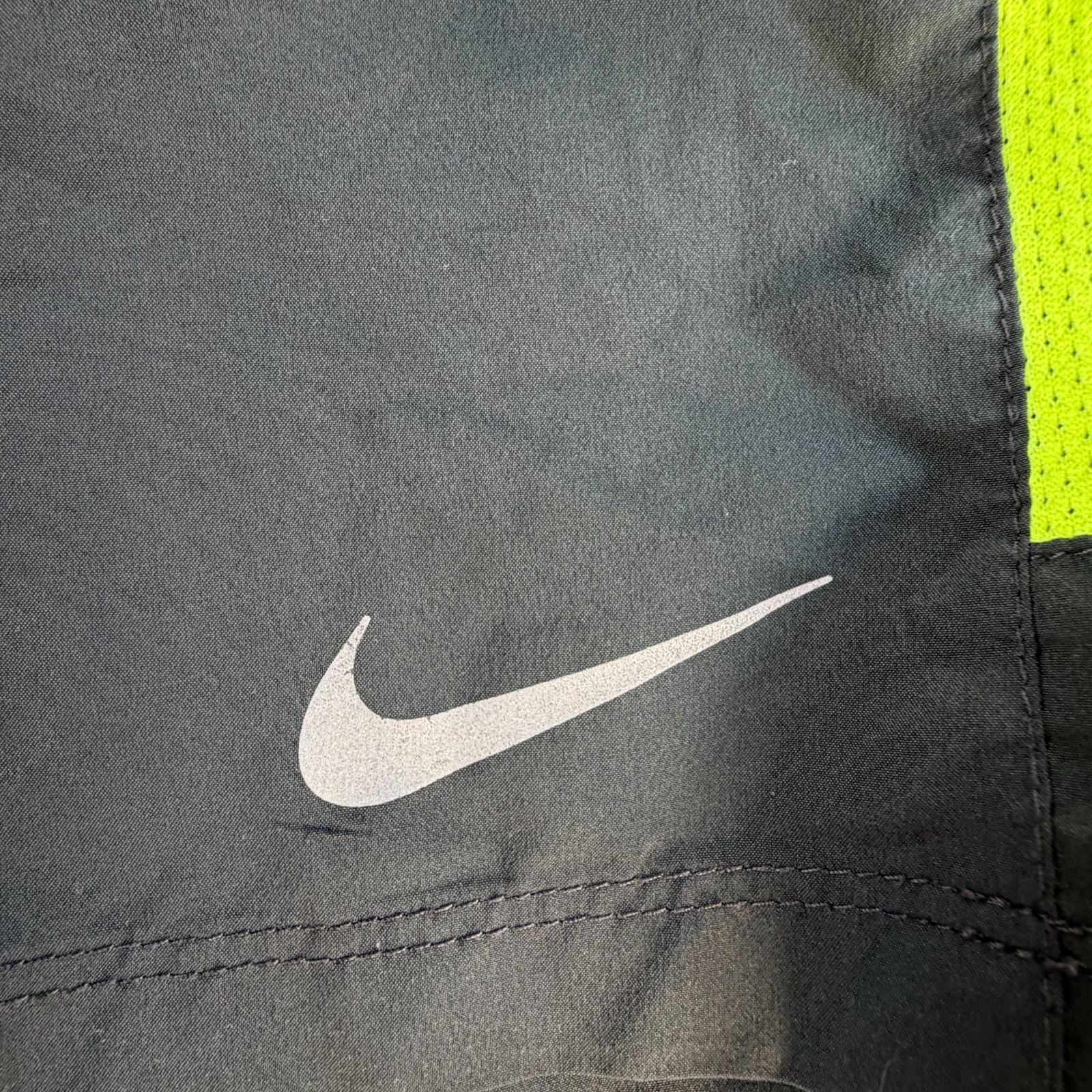 Nike Dri-FIT Performance Running Shorts Lightweight athletic shorts designed for breathability, movement, and moisture control. Details: Brand: Nike Size: Men’s Large Color: Black with neon green mesh panels Material: 100% Polyester Dri-FIT moisture-wicking technology Elastic waistband Mesh side panels for ventilation Reflective Nike Swoosh Lightweight running / training design Made in Vietnam Measurements: Please see included photos for measurements. Classic Nike performance shorts with high-visibility mesh panels — ideal for running, training, gym workouts, or warm-weather activity. 💛 Thanks for supporting our small family business!