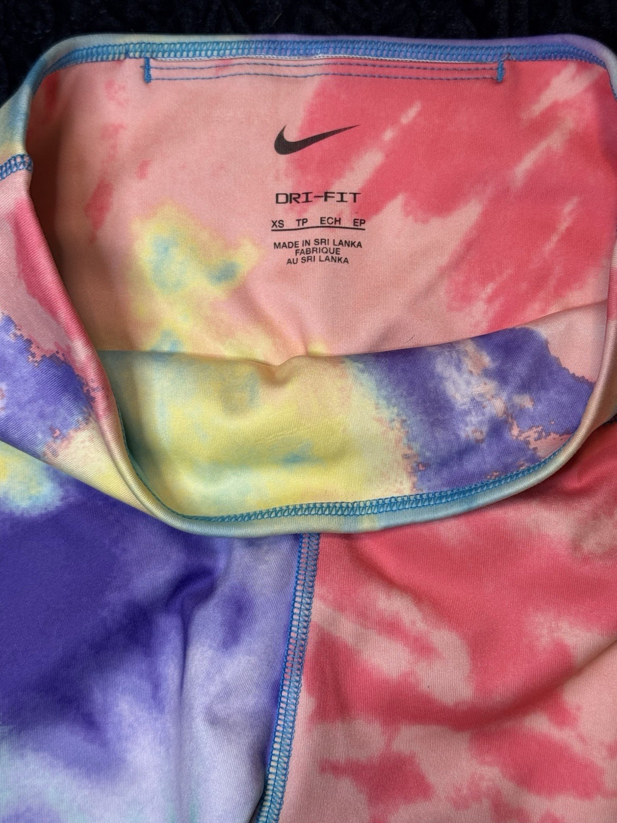The Nike Dri-FIT One 7/8 Mid-Rise Tie-Dye Leggings in size XS are a versatile and stylish addition to any gym wardrobe. Made from a polyester blend fabric, these leggings feature an elastic waistband and pockets for added convenience. The compression style and slim fit offer a comfortable and flattering wear for activities such as gym training, yoga, and running. The tie-dye pattern adds a fun and trendy touch, making these leggings suitable for both casual wear and travel. With their anti-chafing technology and moisture-wicking properties, these Nike leggings are perfect for all seasons and various physical activities.