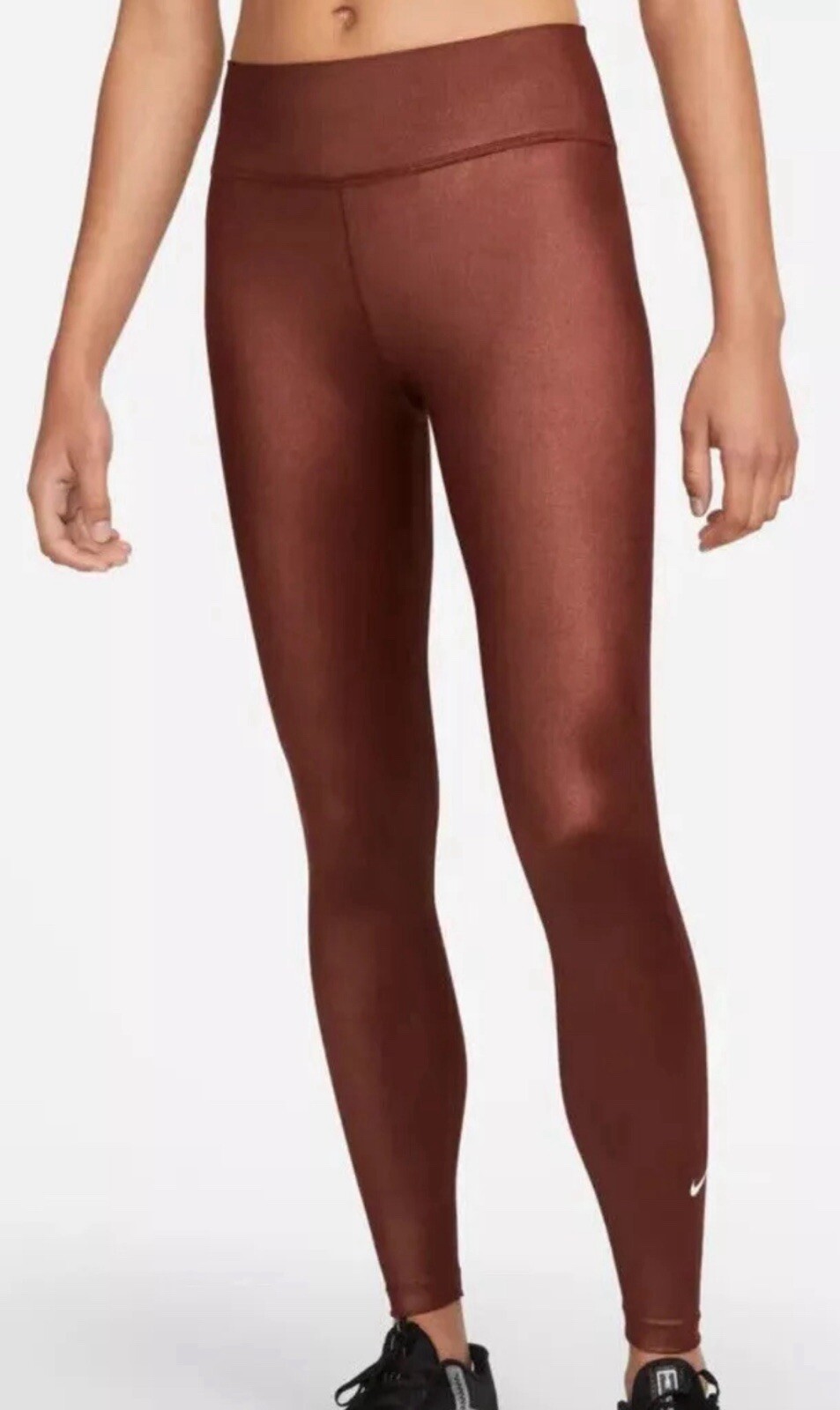 These leggings are amazing! The Dri-FIT fabric keeps me cool and dry, while the shiny bronze finish adds a stylish touch. They fit perfectly, stay in place during workouts, and feel super comfortable. The mid-rise waist is flattering, and the quality is top-notch. Shipping was fast too—highly recommend!