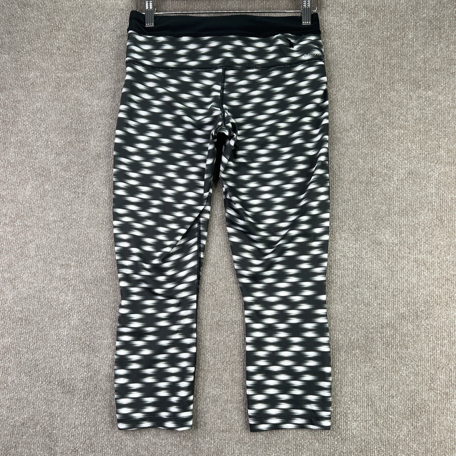 These leggings are super comfortable and perfect for running or workouts! The Dri-Fit material keeps you cool, and the fit is just right. Even though they're pre-owned, they're in great condition—just as described. Love the stylish black print, and the seller ships fast! Highly recommend for active women.