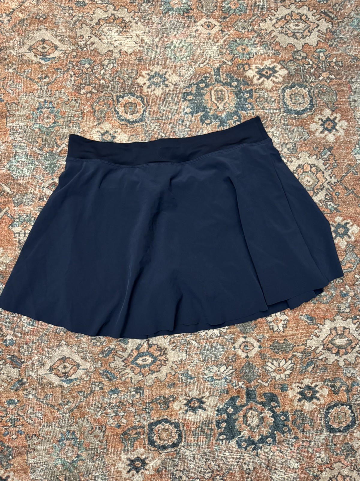 The Nike Dri-FIT Skirt Skort in navy blue is a versatile athletic piece designed for women who enjoy tennis or running. Made with a blend of polyester and spandex, this skort offers a comfortable and supportive fit. The pull-on closure and built-in shorts make it convenient for active occasions, while the solid pattern and athletic style reflect a sporty look. Perfect for women looking for practical yet stylish activewear in size XL.