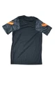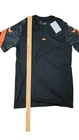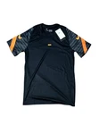This Nike Dri-Fit shirt is a black jersey with orange accents, featuring a logo on the front. It is a short sleeve athletic fit shirt in size M for men. Made of polyester material, it is suitable for sports activities and has a classic sports theme, perfect for summer, fall, and spring wear.