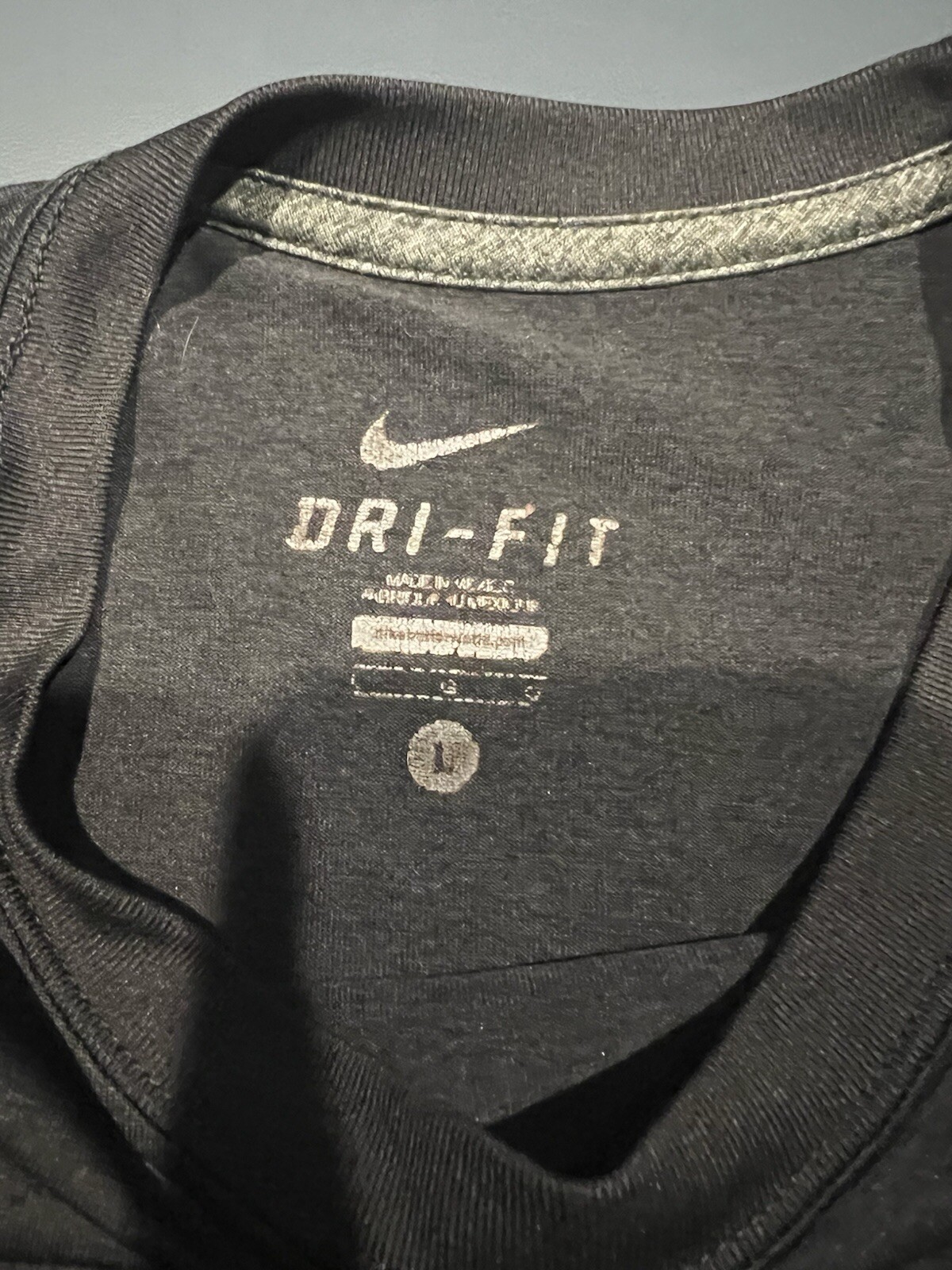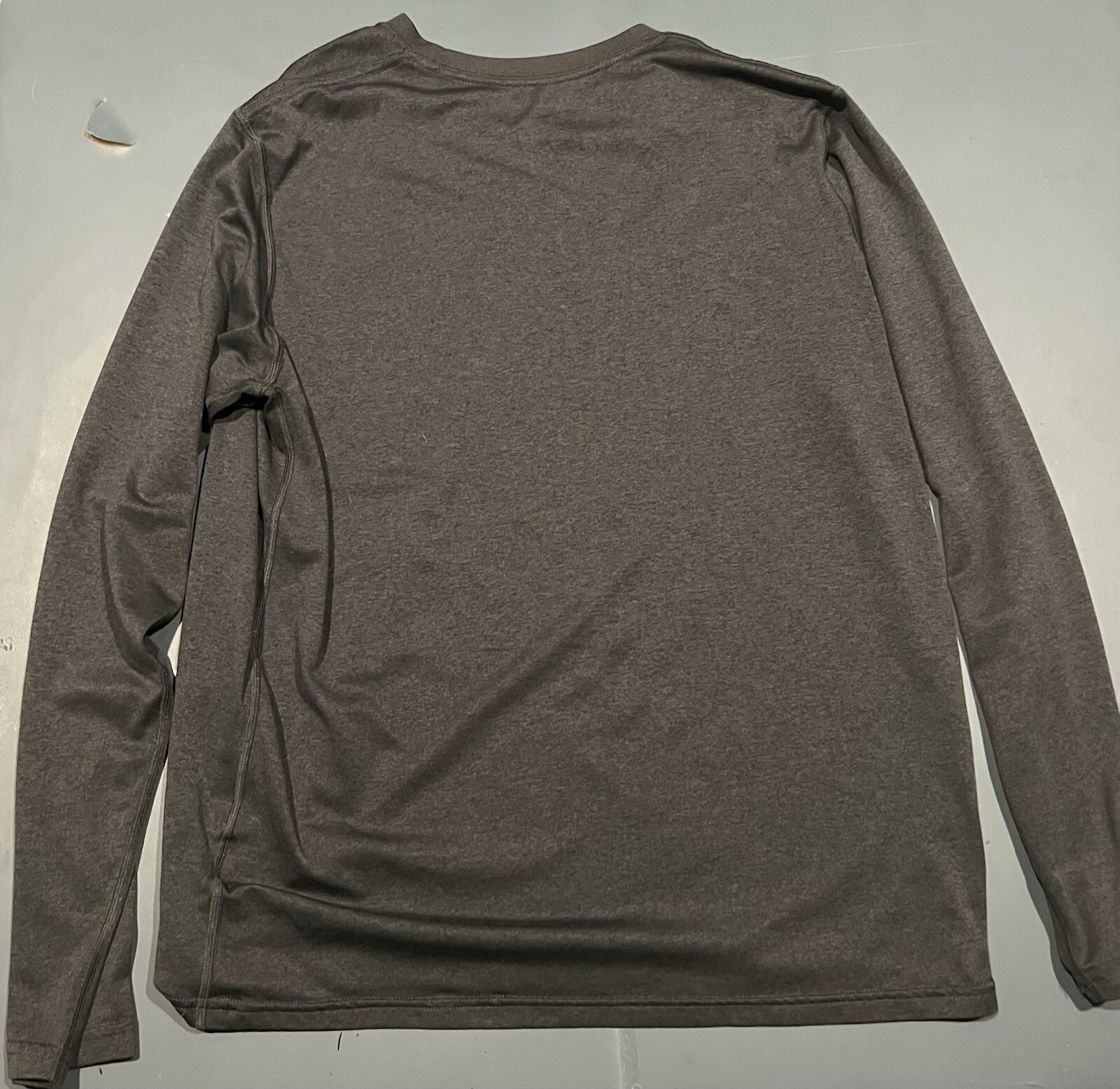 This Nike Dri-Fit Compression Shirt is a men's long sleeve t-shirt in black and grey colors with a classic crew neck and Nike logo accent. Large. It features moisture-wicking and breathable properties, making it suitable for all seasons. The shirt is designed for a regular fit and is crafted from a solid fabric, ideal for sports activities. With its Large size, this Nike Dri-Fit shirt offers a comfortable and stylish option for individuals looking for a versatile and high-performance top.