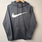 Nike Dri-Fit Hoodie Mens Medium Gray Long Sleeve High Neck Swoosh Logo Active. Condition is Pre-owned. Shipped with USPS Ground Advantage.