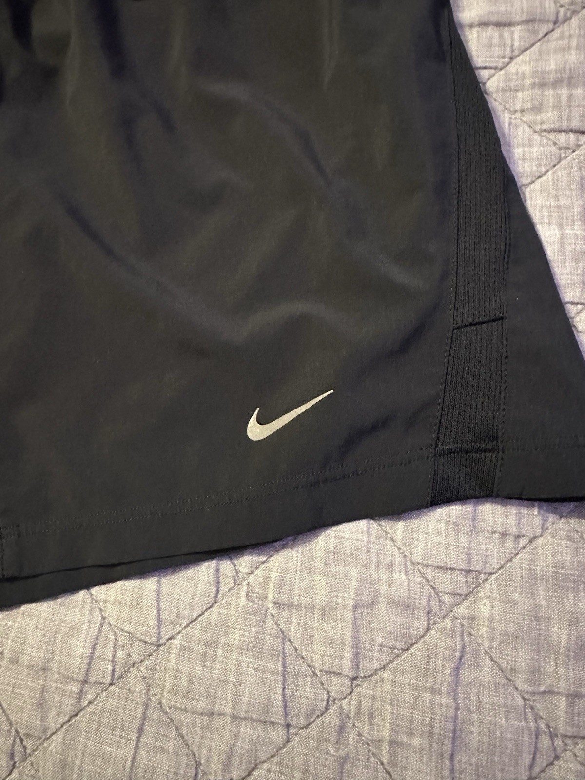 Nike Dri-FIT men’s athletic shorts in classic black. Designed for comfort and performance, featuring lightweight moisture-wicking fabric and breathable mesh side panels. Elastic waistband with drawstring for an adjustable fit. Perfect for gym workouts, training, running, or casual athleisure wear. Condition: Pre-owned, very good condition with no holes, stains, or tears noted. Please review all photos for condition and measurements.
