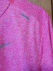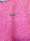 Ladies Nike Running tee in size small. Bright pink Heather in color. Reflective logo and taping. Excellent pre-owned condition with no holes, stains or pilling. Please see all photos as this is the exact garment you will receive. Measurements taken with item laying flat, armhole to armhole is 18", length from high point of shoulder to bottom hem is 24" Thank you for shopping TKO Specialties F25