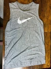 This Nike Dri-Fit Sleeveless Training Muscle Tank Top in size XL is designed for boys. It features a round neck, pullover style, and lightweight, breathable material. The tank top is ideal for summer and spring seasons, suitable for activities like travel, casual wear, and sports such as basketball, football, and running. The Nike logo accents the gray tank, which is machine washable and part of the Nike Dri-FIT product line known for performance and comfort during athletic activities. Perfect for active young athletes looking for a comfortable and stylish top for their training sessions.