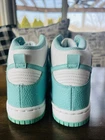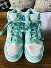 The Nike Dunk High Island Green is a pre-owned sneaker designed for teens. Minimal wear, worn twice, in exceptional condition. It features a high top shoe shaft style with a stylish island green colorway and a leather upper. This athletic shoe is part of the Nike Dunk product line and was released in 2017. With a US shoe size of 3.5, this Nike Dunk model is a popular choice for those looking for a trendy and comfortable sneaker option.