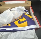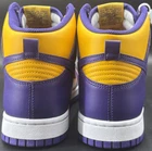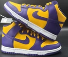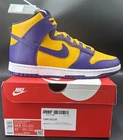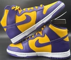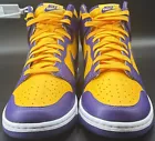 Step up your game with the Nike Dunk High Retro Lakers Men's Size 10.5, a harmonious blend of classic style and modern comfort. These sneakers feature a striking Court Purple and Gold colorway, inspired by the iconic Lakers aesthetic. The high-top design offers ample ankle support, while the cushioned insole and breathable materials ensure comfort throughout the day. Whether you're hitting the hardwood or the streets, these athletic shoes are versatile for a range of activities, from basketball to running and jogging. The lightweight construction and standard shoe width cater to a comfortable fit, making them a solid choice for anyone seeking a combination of style and functionality.