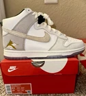 Elevate your sneaker game with the Nike Dunk High San Francisco Pack - Gold Mountain. This stylish and comfortable pair of shoes boasts a high top design, suede upper material, and a unique color scheme of white and gold. The FD0776-100 style code and 2023 release year add to its appeal, making it a must-have for any sneaker enthusiast. Perfect for men or women who love athletic shoes, the Nike Dunk is a classic model that has been tried and tested over the years. With its iconic design and superior quality, this sneaker is sure to impress. The eBay product ID (ePID) 6058601582 adds to its authenticity, making it a great addition to any sneaker collection. Size M 8.5 / W 10