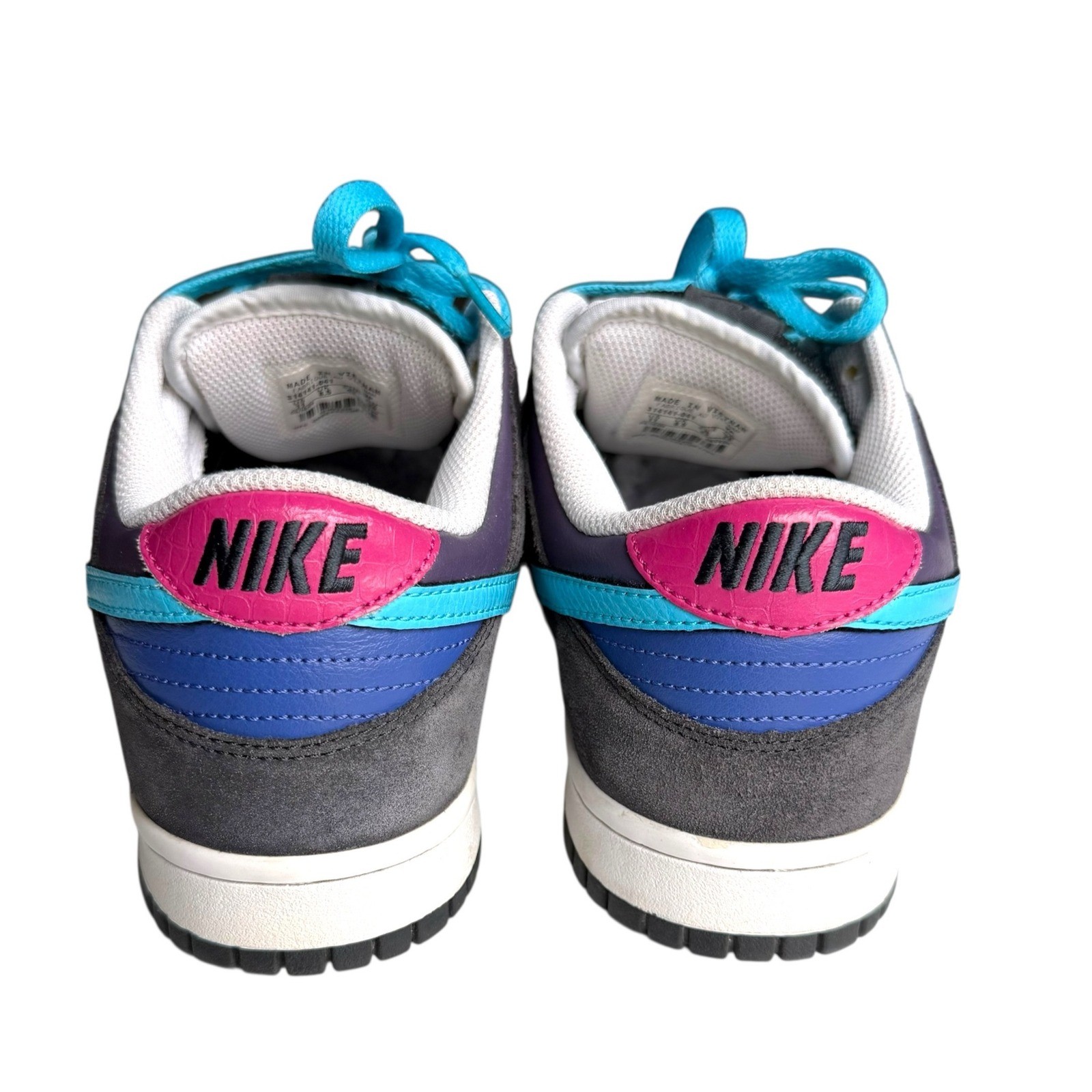 Nike Dunk Low 6.0 Sneakers Size 11 W, 9.5 M, 314141-041 Pink Blue Purple Black Rare, hard to find - from 2009 Excellent Preowned Condition Women's size 11 Men's size 9.5 Keywords: Nike Dunk, Low Top, Colorblock, Streetwear, Fashion Sneakers, Athletic, Casual, Vibrant, Unique Design, Everyday Wear, Comfortable, Sporty, Dunks, Skate shoes, skateboarding, Y2K