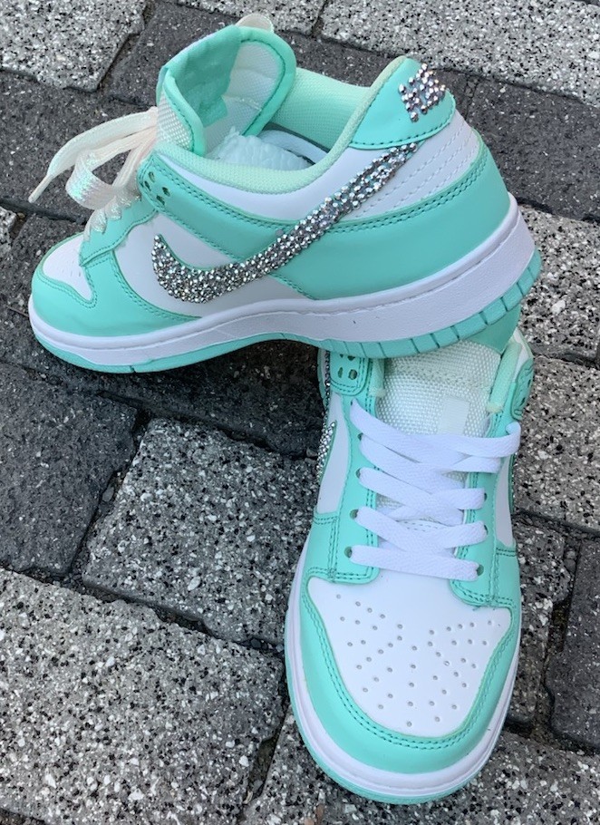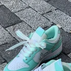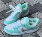 Women’s Nike dunk low customized mint green and white comes with extra pair of bling laces and pvc volt shoe box size 6.5 eur 37.5