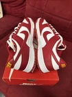 The shoes are brand new, but have some minor dirt on the bottoms from being tried on. Box is in decent condition with some minor damage.