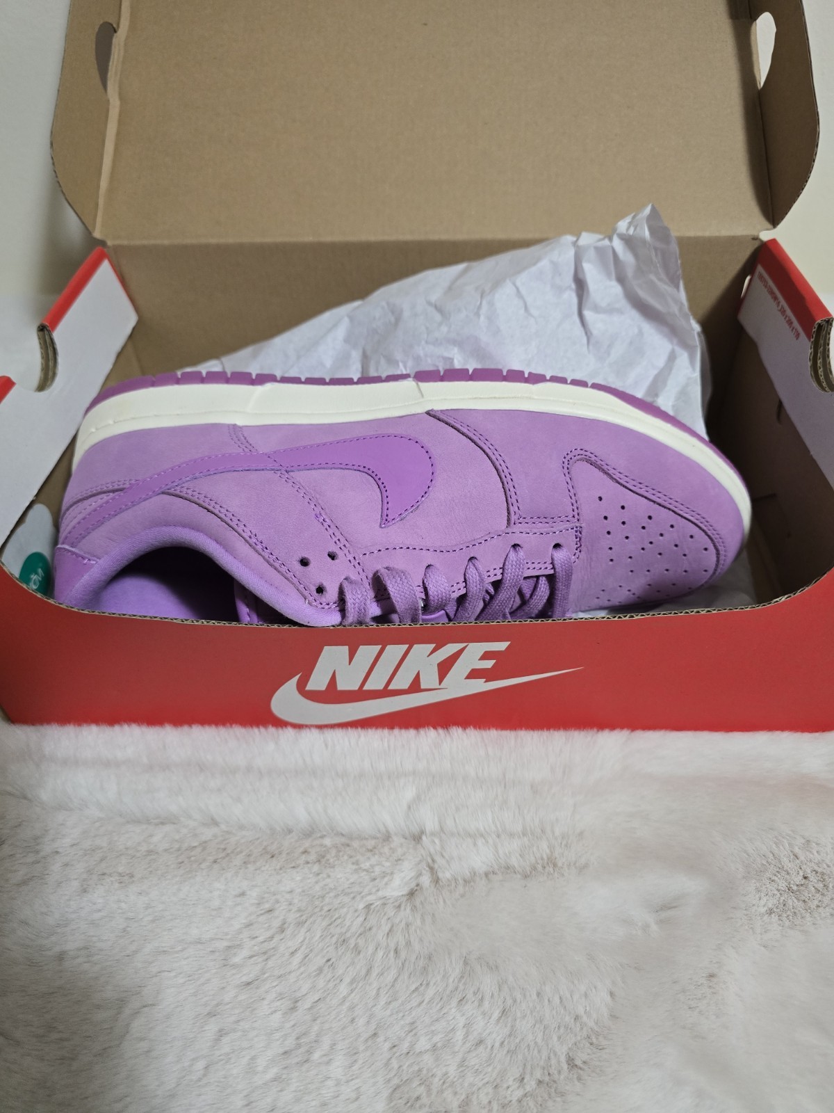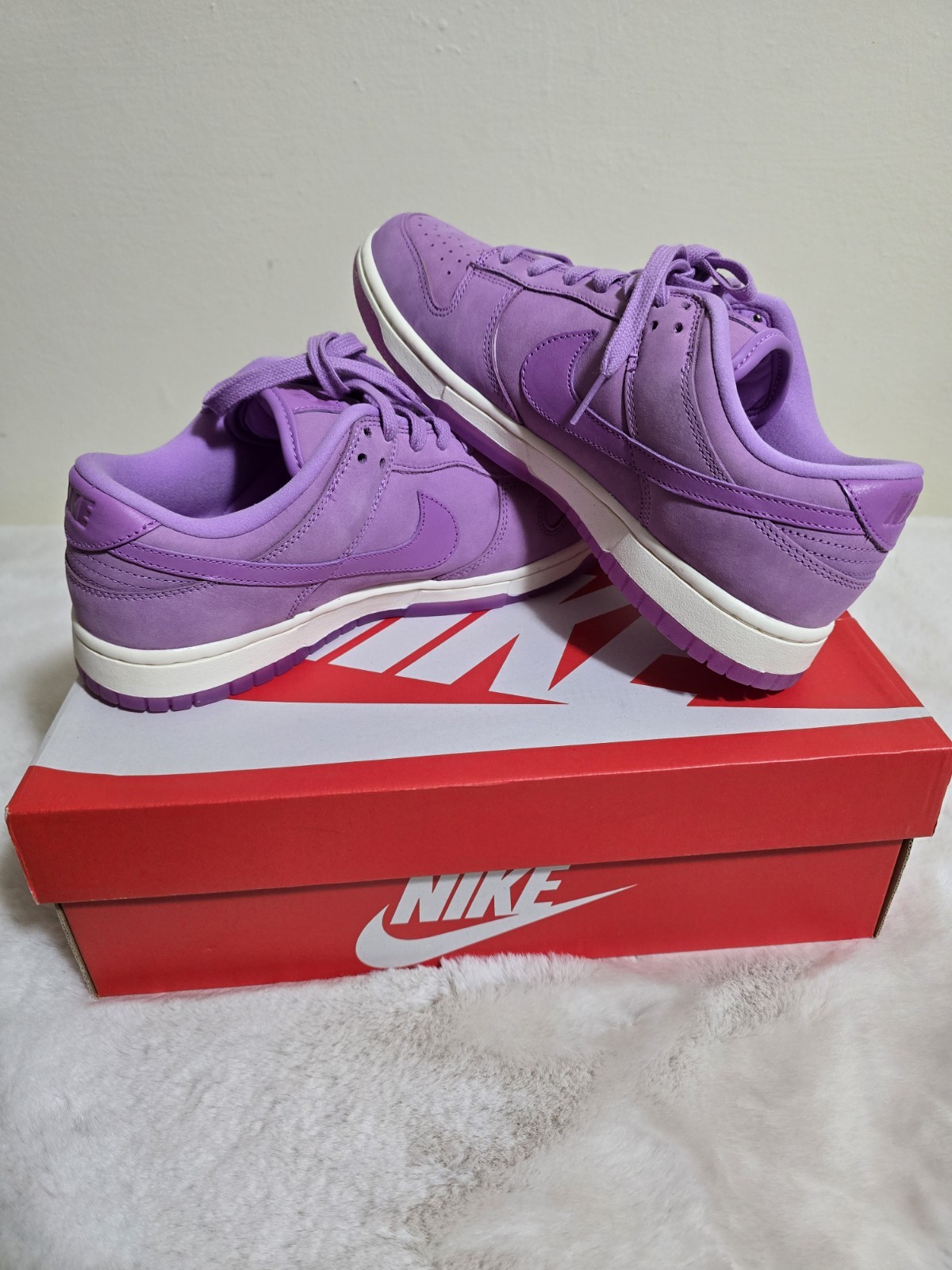 The Nike Dunk Low Premium Rush Fuchsia Women Size 9 is a stylish athletic sneaker designed for active women. Featuring a lace-up closure, cushioned insole, and rubber outsole, this shoe offers comfort and support for various activities such as gym training, walking, and basketball. The pink fuchsia color with Barbie character accents, along with the limited edition design, make it a trendy choice for casual or activewear occasions. Made with a nubuck upper and suede lining, this Nike Dunk combines both style and functionality for the fashion-forward woman looking for a versatile athletic shoe.