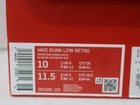 Nike Dunk Low Retro Men’s Size 10.0 US - Classic Style Sneakers Key Features **NIKE DUNK LOW RETRO** - **Brand Name:** NIKE - **Product Type:** Sneakers - **Model:** DUNK LOW RETRO - **Size:** 28 cm - **Color:** WHITE/TEAM GREEN-WHITE **Detailed Features:** - Condition: Used with noticeable signs of wear including scuffs, dirt, wrinkles, and lint. - Authenticity: from a reputable brand buyback store with thorough authentication. - Accessories: Includes everything shown in the pictures. **Additional Information:** - Please note that the color may appear differently due to lighting and monitor settings. - This item is sold as-is; no holds or special requests for photos will be accommodated. - Simple packaging will be used for shipping. **Important:** This is a pre-owned item; please ensure you understand its condition before purchasing. Specifications Brand Nike Country Japan US Shoe Size 10 UK Shoe Size 9.5 EU Shoe Size 46 JP Shoe Size 28 Product Description For customers who want to use the bundle discount Thanks for taking a look at this page! Please message me if you are considering purchasing several items. We can offer a discount on the shipping cost by bundling them together. Since we have a large number of items,it would be great if you could give us the item number or the title of the item. Sorry for the inconvenience. Please reply to me and I will send you a message from our expert staff. Thank you very much! Item Descriptions Thank you for taking a look at the item we are listing. This item is a used item. If you have any questions or concerns about this item please feel free to contact us. We also have many other items on ebay besides this item. It would be great if you could take a look at that as well. Please make sure you understand all of our policies including our sales policy before you buy. We are selling this item in accordance with ebay's policies. Please be sure to review ebay's policies before making a purchase Shipping Information Rest assured, I adhere strictly to shipping deadlines to maintain reliable service. Your satisfaction is my priority, and I handle each shipment with care and efficiency. Should you have any questions or concerns, feel free to reach out at any time. Message For You Thanks for taking a look at my products. We hope you will consider them. I am listing on ebay with my company. I am listing my products on ebay in Japan. I have only slight feedback. It may be making you uncomfortable. But don't worry. I will provide courteous and responsive service. We also have a variety of other products for sale. We hope you will take a look at those as well. We hope you will consider purchasing our products. All of the products we sell are cleaned and disinfected during inspection. Please be sure to review and understand the policies listed below before making a purchase. If you have any questions please contact us. There is an inquiry button at the top. Notice Becausethe international air shipping forbid to ship liquidpowder and batteries If you purchased goods containing such items we will not be putting them packing. Please understand them before purchasing the product. INTERNATIONAL BUYERS Import duties taxes and fees are not included in the price or shipping charges of the items you purchase. You are responsible for payment of any import duties taxes and fees. If you are unsure of the price of import duties taxes and fees please contact your country's customs office for confirmation. If you owe import duties taxes or fees they will be charged to you by the shipping company. When we ship goods we do not undervalue the declared value below the value of the goods. We also do not ship as gifts. These are strictly prohibited by eBay policy. Please refer to the following for more information. https://www.ebay.com/help/buying/shipping-delivery/changing-delivery-address-method/international-purchases-shipping?id=4057 There are also other ebay policies that buyers should review. Please be sure to abide by them before making a purchase. FEEDBACK POLICY We provide timely customer support to all purchasers. We will respond to your inquiry within 24 hours. Our working hours are from 10:00 to 20:00 Japan time. Once you have received your item please make feedback for us as this will let us know that you have received your item. In case of damage please be sure to take pictures of the following items and send them to us 1. Photograph of the entire item 2. Photograph of the damaged part 3. A photo of the condition of the cushioning material in the package 4. A photo of the condition of the cardboard box it arrived in SHIPPING POLICY Shipping methods are Japan Post FedEx and DHL. If you select ""Economy Shipping from outside US"" or ""Economy International Shipping"" at the time of purchase your order will basically be shipped by Japan Post. All shipments are tracked. Please buy with confidence. Shipping by Fedex or DHL is the fastest shipping method available. Shipments are usually made within 5-10 business days. The earliest we can ship is the day after the ship date and in some areas it may take several days but we try to get your order to you as soon as possible. A shipment control number or tracking number will be sent to the customer as soon as it is issued. We strictly adhere to package handling times. *It may take longer than the estimated arrival date due to carrier and traffic conditions in each region. Due to global disruptions we may not be able to ship to some areas. Subject to change on a daily basis. If we find after purchase that we are unable to ship we will issue a full refund. PAYMENT POLICY We accept a variety of payment methods. Please use the payment method of your choice. These are all offered at eBay Managed Pyments. RETURNS POLICY Basically no claims no returns. Please take a good look at the pictures listed and be sure to review our sales policy before purchasing. However if your purchase is defective or faulty we promise a money-back guaran