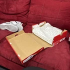 The shoes have been tried on and have the SLIGHTEST smallest marks on the bottom, and the box is heavily damaged. See pictures for this, but if you need more pictures, let me know.