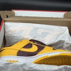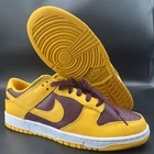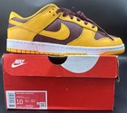Elevate your sneaker game with the Nike Dunk Low Retro University Gold and Deep Maroon, a stellar addition to any enthusiast's collection. The sleek University Gold upper, paired with the stylish low top design, creates a classic look that pays homage to basketball and skateboarding heritage. These kicks are perfect for those who appreciate a blend of comfort and style, whether you're hitting the courts or cruising the city streets. Crafted with premium leather and featuring a supportive shoe width, these sneakers promise durability and comfort for all-day wear. The Nike Dunk Retro Low model, with its non-customized, standard fit, ensures a consistent experience in every step. Complete with the unmistakable Nike quality and the versatility to match various activities, these size 10 shoes are ready to make a statement.