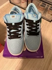 The Nike Dunk Pro SB Low Gulf in size 9.5 is a stylish and athletic sneaker designed for men. This low top shoe features a suede upper material in a vibrant blue color, perfect for adding a pop of color to any outfit. With its sleek design and secure fit, this Nike Dunk model is ideal for skateboarding and everyday wear. Released in 2021, this shoe is part of the Nike Dunk product line, ensuring both quality and style for the modern man.