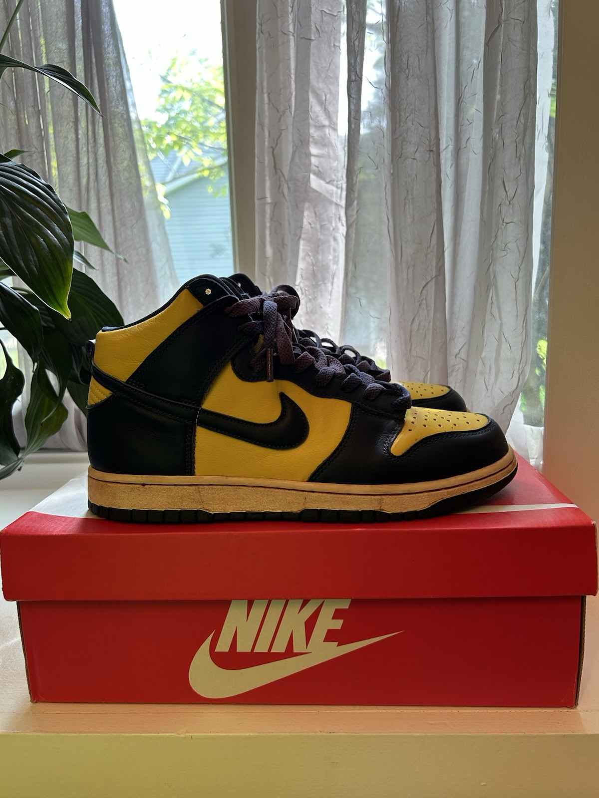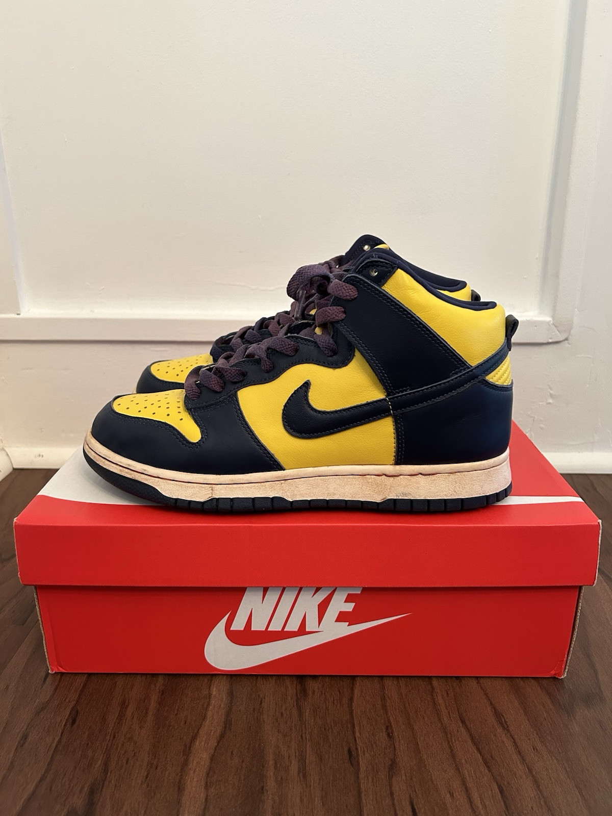 Nike Dunk High 2020 Michigan Size 9.5 Sole dyed with Foxtrot Uniform Sneaker Stainer for OG vintage look Comes with extra Foxtrot Uniform vintage laces Message with questions or offers