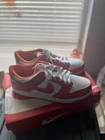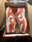 The Nike Dunk Sp Syracuse is a men's athletic sneaker released in 2020. It features a low top shoe shaft style with a white and orange color scheme inspired by the Syracuse University basketball team. The shoe is constructed with a leather upper material and showcases the iconic Nike Dunk design. This model comes in a US shoe size 10 and is part of the Nike Dunk product line. The style code for this particular colorway is CU1726-101, and it is popularly known as the "Syracuse" edition.