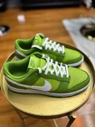 The Nike Dunk Low Chlorophyll in size 10 is a stylish and versatile sneaker perfect for casual occasions. Featuring a low top design with a lace-up closure, this shoe is made with a leather upper and a rubber outsole for durability and comfort. The Chlorophyll colorway, with shades of green and white, adds a pop of color to your summer, fall, or spring wardrobe. Produced in 2022, this Nike Dunk model is a part of the Nike Dunk product line, known for its quality and on-trend design. Whether you're hitting the basketball court or simply running errands, these sneakers are a fashionable choice.