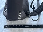 One slight fabric abrasion shown in the last 2 photos, different enlargements. The Nike Elite Quad Zip Bag Backpack in Black is a large, durable backpack designed for travel and casual occasions. Featuring a solid black color with a canvas lining, this backpack is perfect for lacrosse enthusiasts and sports fans. It features a logo for Nike Blue Chip Lacrosse Camp as well as “ Attack everything”. It includes a shoulder strap for easy carrying, an adjustable strap for added comfort, and a zip closure for convenient access. Made from high-quality polyester material, this backpack is a stylish and functional accessory for men who appreciate quality and performance in their gear.