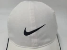 The hat seems best suited for smaller sized heads. The brim is slightly bent/misshapen as seen in photos. Also has some stains/discoloration on the brim as seen in photos. Nike Featherlight Dri-Fit Adjustable (Fits Small) Hat Cap Polyester White Black. EACH ADDITIONAL HAT PURCHASED IS ONLY $1 ADDED SHIPPING!