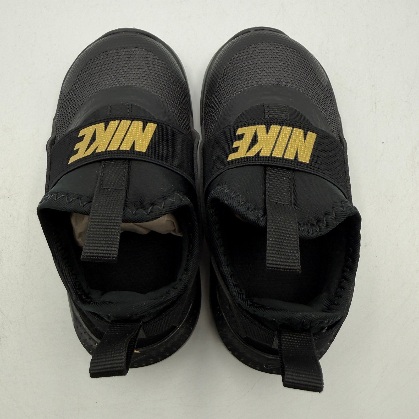 Flex Runner 4 SE (TD) slip-on sneakers provide a lightweight and flexible fit perfect for active toddlers. These athletic shoes feature a breathable mesh upper with a supportive elastic strap for easy on-and-off access. The sleek black design is elevated by metallic gold accents, including a speckled midsole and the iconic "Just Do It" branding. Designed with a durable foam sole that doubles as an outsole, they offer natural movement and traction for all-day play. Brand: Nike Model: Flex Runner 4 SE (TD) Style Code: IM6738-001 Color: Black/Metallic Gold Size: 7C Closure: Slip-on with elastic strap Upper Material: Mesh and synthetic Outsole: Foam Feature: Speckled midsole Feature: Pull tabs for easy entry Gender: Toddler Boys/Girls (Unisex) Keywords: Toddler Sneakers, Athletic Shoes, Slip On, Metallic Gold, Speckled, Running, Gym, Casual, Lightweight, Flexible, Sporty, Activewear, Kids Fashion If you have any additional questions, please don't hesitate to contact me directly.
