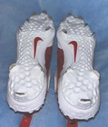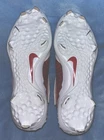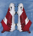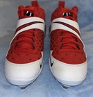 The baseball cleats in the pictures with red background are the exact pair the buyer will receive. They are New without Tags. The Product Description: Nike Force Air Trout 6 Pro Metal Baseball Cleats Sz 7.5 D, Color “University Red,” Style AR9815-600 Product Information: Inspired by all-time baseball great Mike Trout, the Nike Force Air Trout 6 Pro 'University Red' released in July, 2019, includes a number of personal details from the legend. The high-top molded upper consists of a snakeskin aesthetic and wide midfoot strap that adjusts for comfort, offering unique style and a locked-down performance feel. The heel Air-Sole unit and angled metal spikes deliver cushioning and traction during play, and an arrowhead design on the strap honors his love for hunting.