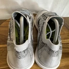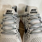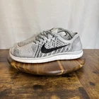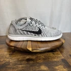 Nike Free 4.0 Flyknit Men's Running Shoes in size 10.5, featuring a lace-up closure and a low-top sneaker style in gray color. These athletic trainers from Nike's Free product line offer comfort and breathability, suitable for activities like gym training, walking, and running during the summer, fall, and spring seasons. Made with a rubber outsole and synthetic upper material, these shoes are designed for sports and casual wear with a colorful and athleisure theme.