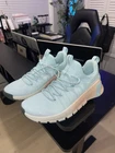 The Nike Free Metcon Women’s Training Shoes in size 10.5 are a stylish and functional option for active women. These gym sneakers feature a light blue mint color palette with accents of glacier blue, washed coral, vintage green, and metallic silver. Made with breathable mesh material, these athletic shoes are designed for comfort and performance during workouts. The Nike Free Metcon model combines fashion and functionality, making it a popular choice for women looking for quality athletic footwear.