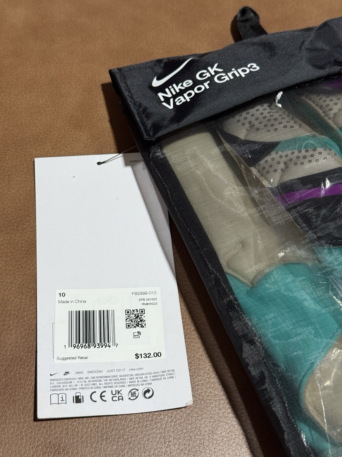The Nike GK Vapor Grip 3 Goalkeeper Soccer Gloves are designed for elite level soccer goalkeepers, featuring a size 10 fit with a 5 finger style and knit wrist cuff. These blue gloves are made of lightweight polyester material with a latex grip coating for optimal performance on the field. The adjustable wrist strap and bandage closure provide a secure and comfortable fit, while the 2023 model year ensures the latest design and technology. Suitable for both men and women, these gloves are ideal for competitive play and are recommended for hand washing to maintain their quality.