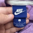 The Nike Girls T-Shirt in size Large is a stylish and comfortable top for young girls. This lavender short sleeve shirt features the iconic "Just Do It" logo with a pocket, making it perfect for casual occasions during the summer, fall, and spring seasons. Made from a cotton blend fabric, this pullover shirt is easy to wear and ideal for various activities such as walking, school, and running & jogging. The Nike brand adds a sporty and colorful touch to this popular and versatile piece of clothing. It is slightly lighter than how it looks in my photos The pit to pit is 16 inches and the shoulder length down is 19.5 inches