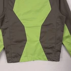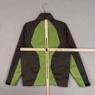 Spot on cuff. Fabric and lining are clean and intact. Zipper and hook-and-loop cuff straps function properly. Brand: Nike Golf Style: Mens full-zip windbreaker jacket in green colorblock design. Size: Small (mens regular fit, per interior label). Materials: Outer body and inner body 100% polyester softshell fabric with patterned polyester lining. Details: Stand collar, full front zip closure, front zip hand pockets, lined interior, adjustable hook-and-loop strap cuffs, lightly structured hem, Nike Swoosh logo at cuff, lightweight construction ideal for golf or activewear. Country of origin: Made in Thailand. Codes on tags: RN 56323; CA 05553; style code 333105-061; additional code FA090106NAC; UPC: 884751447402. 24094 Measurements: Previous washings may change sizing on the tag. Refer to photos above for all measurements. Compare our measurements to one of your favorite garments. Measurements are approximate. All items are bagged and sealed after being photographed, then stored in a smoke free environment. Washed per eBay standards. I carefully package and ship daily. Contact me with any questions. Thanks