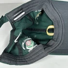 This is a green Nike Golf green cap, with the Oregon "O" logo on the front, Rose Bowl Game with logo and "Presented by Northwestern Mutual" on the left side, a football and "Playoff Semifinal" on the right side, a Nike swoosh on the back and on the left front side of the brim. Like other "golf" style caps, it is softer and not as rigid as a regular cap.