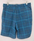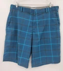 Nike Golf Tour Performance Dri-Fit Plaid Shorts Men's Size 38. They have a green plaid patten with a gray swoosh on the back belt loop and it's made of 95% polyester and 5% spandex. Please check measurements as preowned item measurements may vary. The waist measurement is 38 inches, the rise is 12 inches and the inseam is 12 inches.