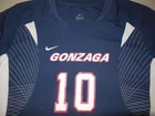 6 YOU MIGHT FIND ITEMS FOR A LOWER PRICE ON EBAY, BUT YOU WILL NOT FIND ANYONE WITH A BETTER REPUTATION FOR FAST SHIPPING, INTEGRITY, AND ITEMS AS DESCRIBED OR BETTER, THAN COFFEE TOK ATHLETES CLOSET! Up for auction is one Nike Gonzaga Bulldogs Soccer Jersey. Awesome jersey!!! Authentic team issue. Bright crisp graphics. Dri Fit. Made from polyester/spandex. Excellent condition, hasn't been worn much. No Stains, No Holes. Color is dark blue w/ grey trim. Red/white graphics. Size is tagged a WOMAN'S LARGE. PLEASE CHECK THE MEASUREMENTS TO CONFIRM FIT. The length from front collar to bottom hem is 21.5 inches and pit to pit is 21.5 inches. Please email me before leaving anything other than positive feedback. I will do everything possible to clear up any problems. This is a RARE gem so don't miss it! Accepted payment is PAYPAL ONLY. I ONLY SHIP TO THE U.S. Thank you for looking and Happy Ebay Shopping!