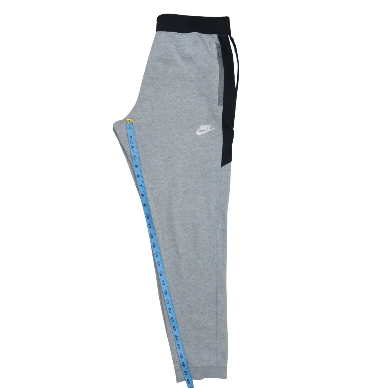 Nike Grey Joggers Sweatpants Men's Medium Logo Print Zip Pockets Contrast Panels Product Details Brand: Nike Style: Joggers / Sweatpants / Track Bottoms / Loungewear Trousers Key Features: Elastic waistband, zip side pockets, contrast black panels, printed Nike logo Colour: Grey with black contrast detailing Size: Medium Fit: Relaxed oversized Material: Cotton and polyester blend fleece body with polyester panels Vintage Quality: A Vintage Quality – excellent condition MeasurementsWaist:30" Outside Leg:37.5" Inside Leg:28" Leg Opening:6" Features Soft fleece interior for everyday comfort and warmth Elastic waistband for an easy pull-on fit Side zip pockets to keep essentials secure White printed Nike Swoosh logo on left thigh Black contrast side panels for a sporty look Ribbed ankle cuffs for a clean tapered leg Quality Checks✅ no visible stains or discoloration ✅ no noticeable odor ✅ no bobbling or wear ✅ embroidery in perfect condition ✅ zipper fully functional ✅ pockets intactAdditional InformationCondition: Excellent pre-owned vintage condition.These Nike grey joggers are a classic staple for casual days, training sessions, or travelling. The soft fleece fabric and elasticated waistband keep them cosy and easy to wear, while the zip pockets add practical storage for your phone, keys or cards. Finished with a bold printed Nike logo and contrast side panels, they pair perfectly with your favourite hoodie, sweatshirt or tee for an effortless sportswear-inspired outfit.Product KeywordsNike, Nike joggers, Nike sweatpants, grey Nike joggers, grey joggers, grey sweatpants, men's Nike joggers, men's joggers, men's sweatpants, size medium joggers, size M joggers, cotton blend joggers, fleece joggers, tapered joggers, cuffed hem joggers, elastic waist joggers, zip pocket joggers, contrast panel joggers, black side panel trousers, loungewear bottoms, gym joggers, training joggers, casual joggers, sportswear bottoms, Nike Swoosh logo, printed logo joggers, grey track bottoms, athleisure trousers, everyday joggers, comfy joggers, soft fleece sweatpants, Nike athletic wear, Nike bottoms, Nike grey trousers, Nike medium men's, Nike track pants, Nike fleece pants, Nike loungewear, classic Nike joggers, wardrobe essential, sports casual pants, tapered leg sweatpants, Nike contrast joggers, Nike logo sweatpants