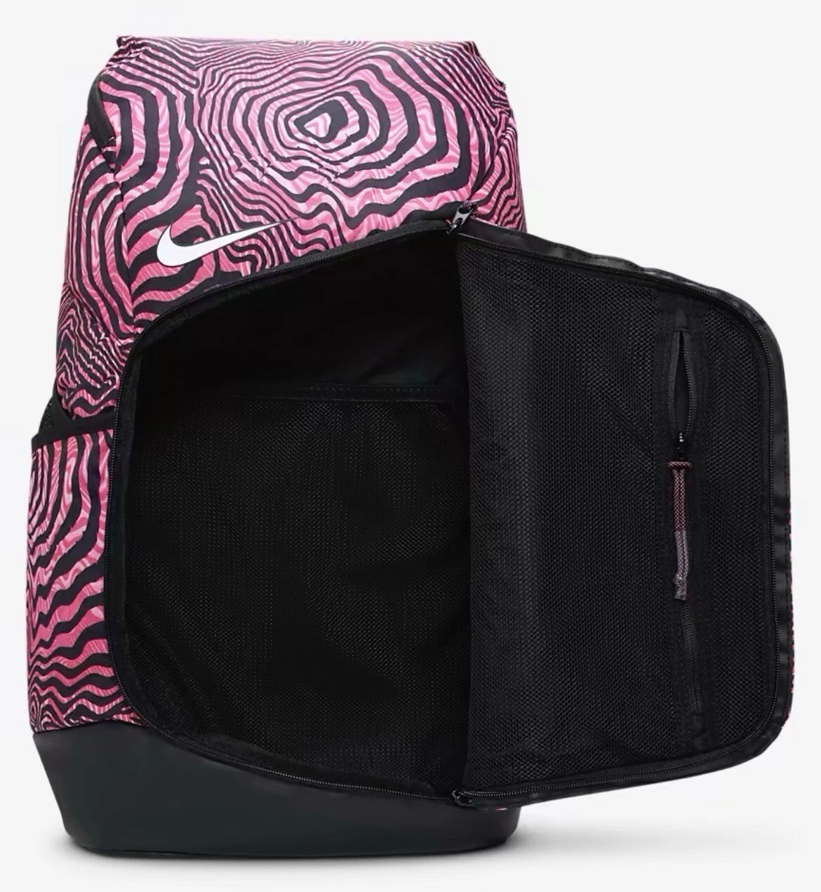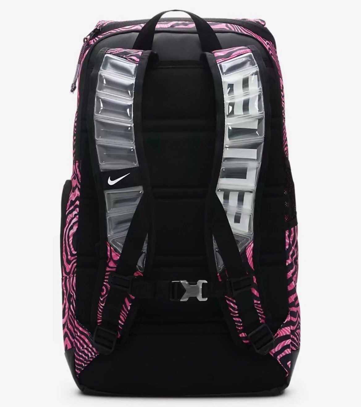 The Nike Hoops Elite Backpack in Kay Yow Black Fierce Pink is a large 32L basketball bag suitable for travel, casual, and business occasions. Made of polyester microfiber fabric, this limited edition backpack features a zip closure, adjustable padded straps, and multiple pockets for organization. The stylish design includes a solid pink color with the Kay Yow character and basketball theme, perfect for sports enthusiasts. With a top handle and lightweight construction, this Nike Elite Pro Hoops backpack is a versatile and practical accessory for both men and women.