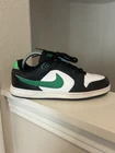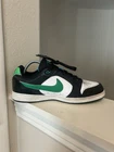 Nike Hustle Low Skate Shoe from 2009 in a size 8 for men. This multicolor sneaker features a low top design with a style code of 369189-131. It is designed for skateboarding performance and belongs to the Nike Hustle product line. Made by Nike in Vietnam, this athletic shoe is suitable for various activities.