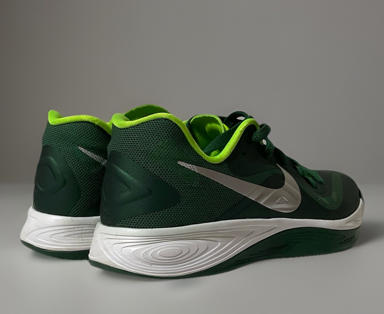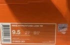 The Nike Hyperfuse TB Low Top in green and silver, size 9.5, is a stylish athletic sneaker designed for men. Featuring a lace-up closure, rubber outsole, and low-top shaft style, this shoe is perfect for activewear and casual occasions. The Hyperfuse upper material, foam insole, and fabric lining provide comfort and durability, making it ideal for basketball performance. With a solid pattern and silver character accents, this Nike shoe is a fashionable and functional addition to any sneaker collection.