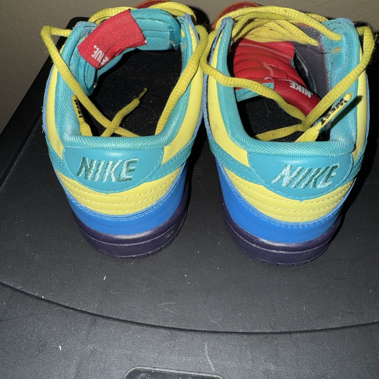 The Nike ID Custom Dunks low sneakers in size US 6 unisex are a unique and stylish choice for activewear or casual occasions. These sneakers, released in 2016, feature a tie closure and a low top shoe shaft style. The custom colorblock design in orange adds a personalized touch to the Nike Dunk Low model. With a focus on customization, skateboarding, and basketball themes, these athletic shoes are perfect for those who want to stand out in their footwear. Made by Nike and featuring the iconic brand, these sneakers are sure to make a statement in any wardrobe.