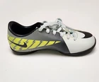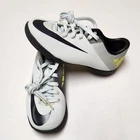 Elevate your child's soccer game with the Nike junior Mercurial Victory Indoor Kids Soccer Shoes. This shoe is designed to provide ultimate comfort and support for young soccer players. The black and neon color combination is stylish and trendy, making it a perfect addition to your child's soccer gear. The shoe is made of high-quality materials and features a durable sole plate for excellent traction on the field. With its sleek design and Nike branding, this shoe is sure to make your child stand out on the soccer field. Get the Nike JR Mercurial Victory Indoor Kids Soccer Shoe today and give your child the competitive edge they need! Constructed with a durable synthetic upper for protection and comfort Enhanced texture throughout the upper improves ball feel and control Features a synthetic top cloth sockliner for foot support during play Includes a die-cut EVA sockliner base for low-profile cushioning Equipped with a non-marking rubber outsole designed for indoor court surfaces Ideal for players seeking agility and precision on indoor pitches