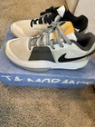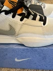 The Nike Ja 1 White/Light Smoke Grey-Black basketball shoes are a stylish and high-performance option for both men and women. With a sleek design featuring a white colorway with light smoke grey accents, these shoes are perfect for athletes looking to make a statement on the court. The mesh upper material provides a lightweight and breathable feel, while the Nike Ja 1 model ensures a comfortable and supportive fit. Whether you're hitting the court for a game or just cruising in style, these shoes are a versatile and fashionable choice. Lightly used