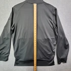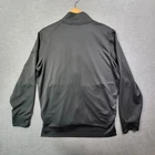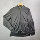 Crafted for the active man, this Nike Dri-Fit track jacket in a versatile gray color offers both style and function. The size medium, athletic-fit design features a breathable, perforated outer shell of polyester, paired with a cozy 100% polyester lining for comfort during high-energy activities. Notable for its full zip closure and long sleeves, the jacket is ideal for a range of sports from baseball to running and jogging. The understated solid pattern and prominent Swoosh logo enhance the jacket's sporty appeal, making it a staple piece for any activewear wardrobe.