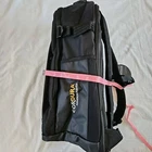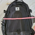 This black Nike Jordan Cordura 29L Franchise Backpack features a solid pattern with a zip closure. It is designed for travel, casual, and workwear occasions with a large size and shoulder strap handle style. The bag is made of nylon material with a fabric lining. It includes inner pockets, adjustable straps, and a bottle pocket, making it ideal for school or sports-themed activities. The model is Jordan Jam Flight by the brand Jordan. Brand new. With tags. Authentic.