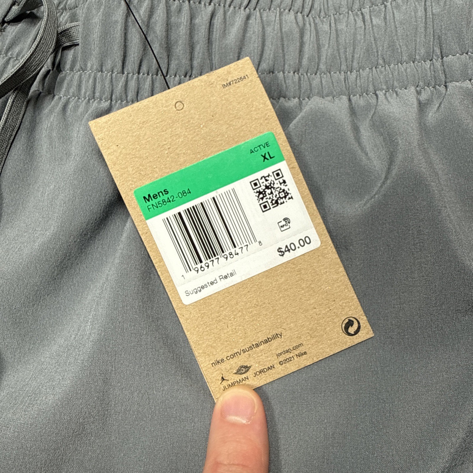 FAST FREE SHIPPING!! Trusted Seller Mens Size XL The Nike Jordan Sport Woven Shorts in Men's XL Smoke Grey are designed for athletic activewear. Made with a blend of polyester and spandex, these shorts feature a solid gray color with a drawstring closure. The design includes the iconic Michael Jordan character, making them a stylish choice for sports enthusiasts and fans of the Nike Jordan brand. The standard fit and regular size make them suitable for activities such as gym training, basketball, and running.