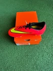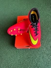 Description: Elevate your child's soccer game with the Nike Jr Hypervenom Phelon FG Kids' Soccer Shoe in Pink. This shoe is designed to help young athletes perform their best on the field. The shoe's features include a comfortable fit, durable construction, and excellent traction. The shoe is perfect for kids who love soccer and want to improve their skills. The pink color adds a stylish touch to the shoe and makes it stand out on the field. This Nike shoe is perfect for any young soccer player who wants to score goals and make a statement. Details: Trusted seller with positive feedback Condition: New with box Designed for: Firm Ground Surfaces Suitable for: Training and matches on natural grass Firm Ground (FG) studs for optimal traction on natural grass pitches Synthetic upper with textured surface for enhanced ball control Asymmetrical lacing system for a larger striking surface Anatomical design for a glove-like fit Cushioned insole for added comfort and support Lightweight construction for increased speed and agility Authentic Nike Product